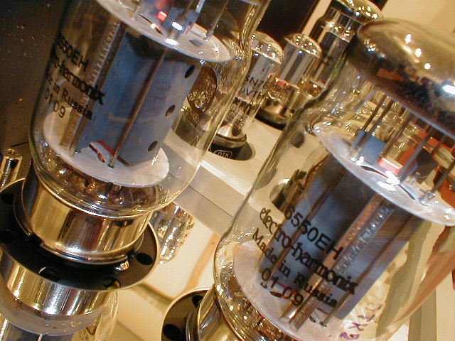 后级使用了四只俄罗斯electro-harmonix 牌6550EH或KT88电子管做AB1类推挽功率放大