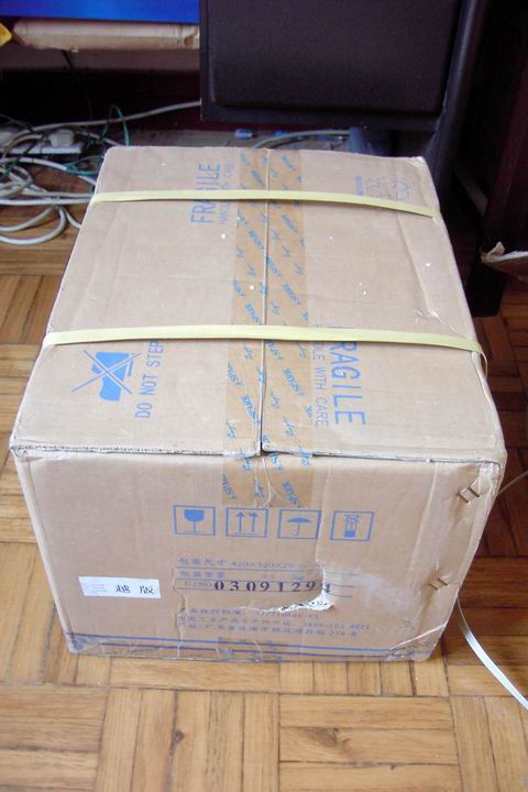我这个月定的AE209在收货时也发现外包装箱损坏,担心得不得了.运货的人根本就没有负责的精神(估计是货运商又包给了别人),直说他只负责送货上门,不管好坏.当时我马上给老赵打电话,赵老板还是很讲道理的,说有问题一定帮我解决. 好在AE209里面泡沫塑料包得紧,看上去没事,听后也正常.