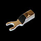 GRS R Two piece, stamped spade, Copper, Rhodium over Silver plate. Brass sleeve,Gold plate.One .10" cable terminating hole.