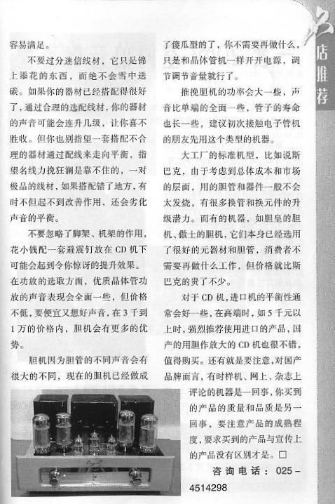 下面是引用音乐之声于2006-12-28 18:19发表的:还有就是要注意,对国产品而言,有时样机、网上、杂志上评论的机器是一回事,你买到的产品的质量和品质是另一回事,要注意产品的成熟程度,要求买到的产品与宣传上的产品没有区别才是。